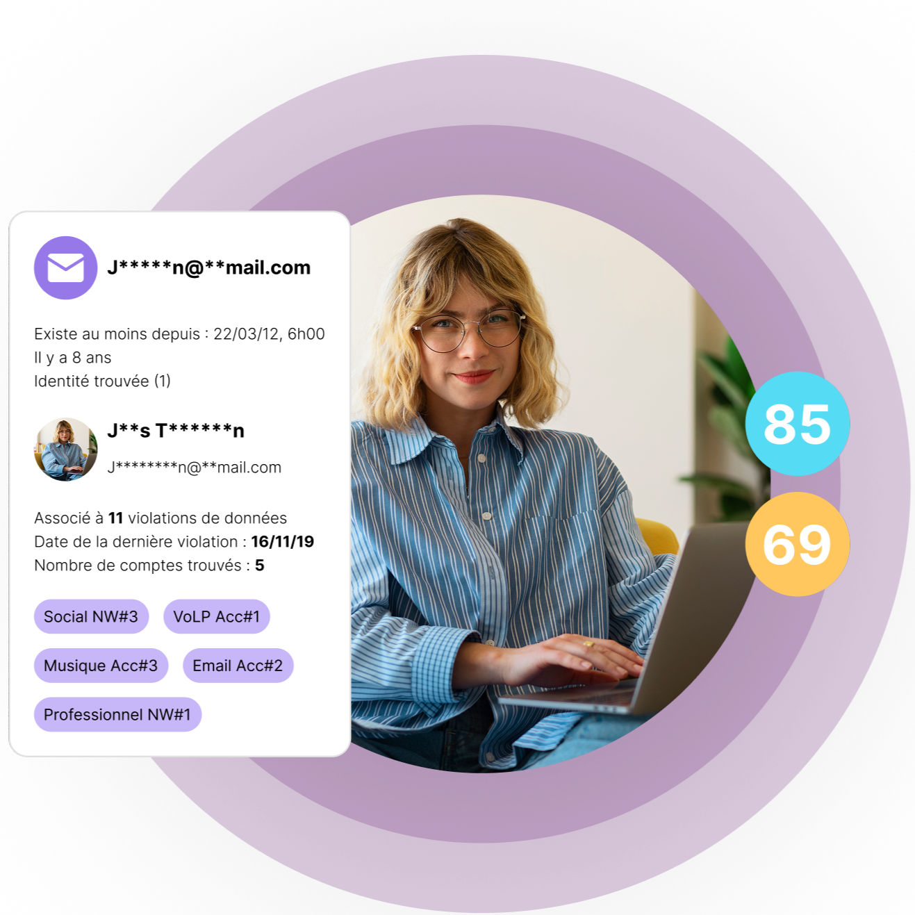 - Analyse des signaux d’identité : nom, e-mail, téléphone, adresse ; vérification de données provenant de tiers et de notre Data Consortium