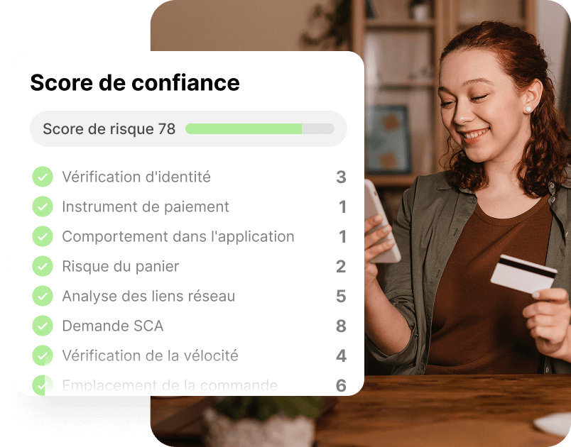 - Scoring de risque instantané : analyse en moins de 2 secondes, conçu pour des checkouts rapides, fluides et à haut volume.
