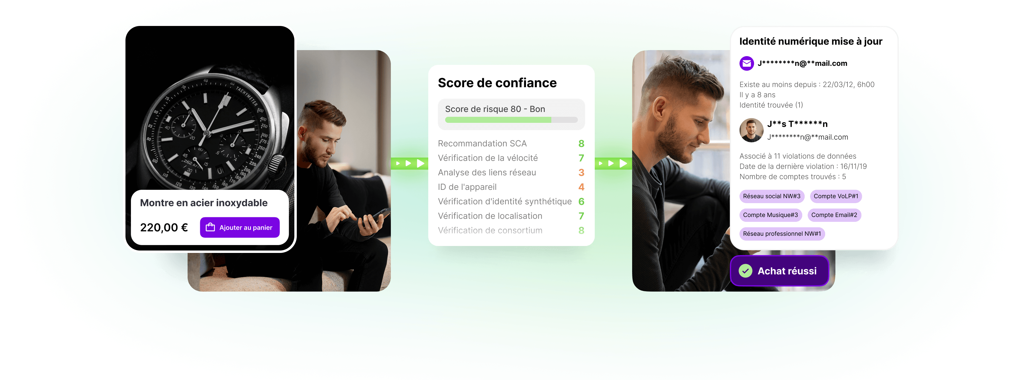 • Scoring de risque instantané : analyse en moins de 2 secondes, conçu pour des checkouts rapides, fluides et à haut volume.