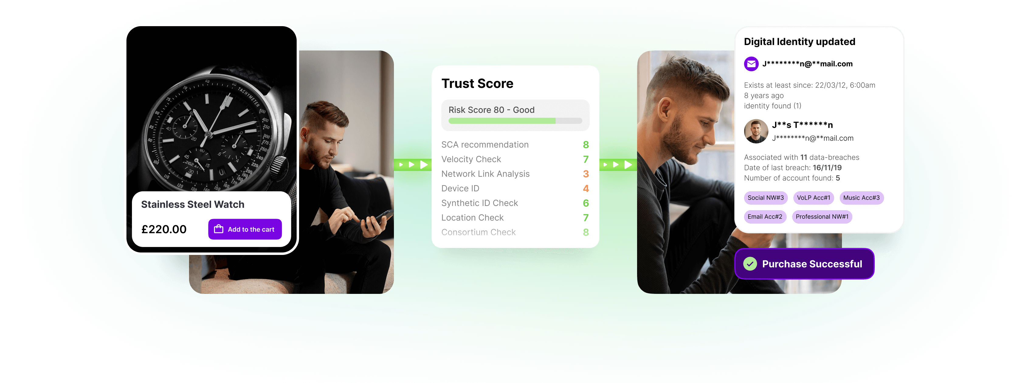Oneytrust combines real-time scoring, millions of verified identities from our proprietary consortium, synthetic identity detection, and behavioural signals to isolate fraud without hurting conversion. Whether you handle massive order volumes or are expanding into new regions, our solution adapts to your environment.
